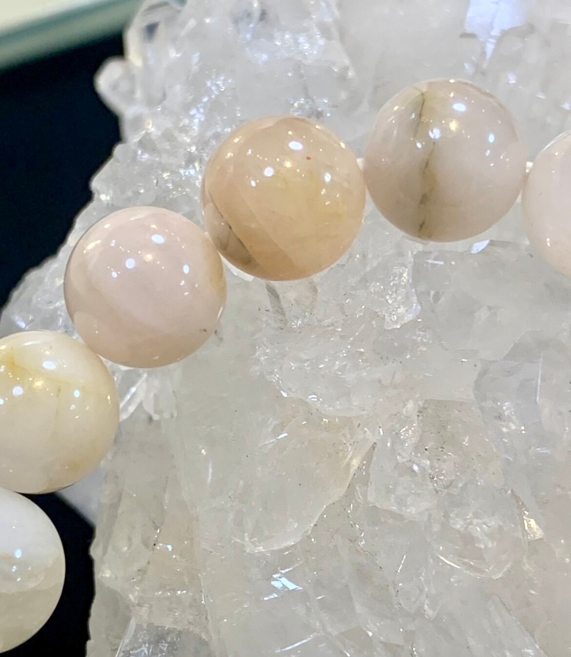 現在フェナカイトのビーズは大変入手困難ですが1粒をお手持ちのブレスに入れるだけでも他の石を高波動化します